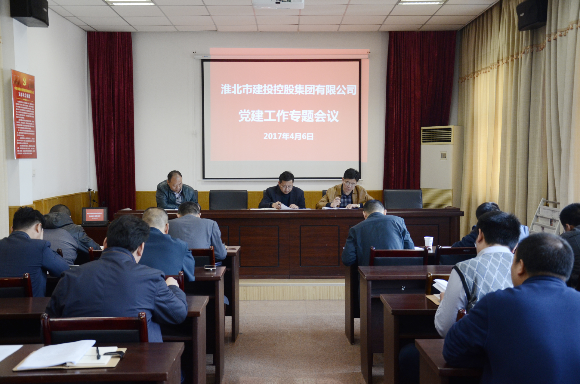 2017年4月6日上午,市建投集團(tuán)在四樓會議室組織召開2017年度黨建專題工作會議,回顧總結(jié)2016年集團(tuán)公司黨建暨黨風(fēng)廉政建設(shè)工作,安排部署2017年黨建和黨風(fēng)廉政建設(shè)任務(wù)。集團(tuán)公司黨委委員、副總經(jīng)理張立哲,黨委委員、紀(jì)委書記王獻(xiàn)忠,黨委組織部、紀(jì)檢監(jiān)察審計(jì)部、各黨支部書記和相關(guān)人員參加了會議。